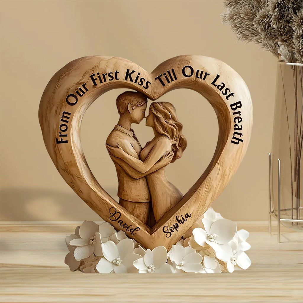 Von unserem ersten Kuss bis zu unserem letzten Atemzug – Personalisierte Acrylplakette in Sonderform für Paare