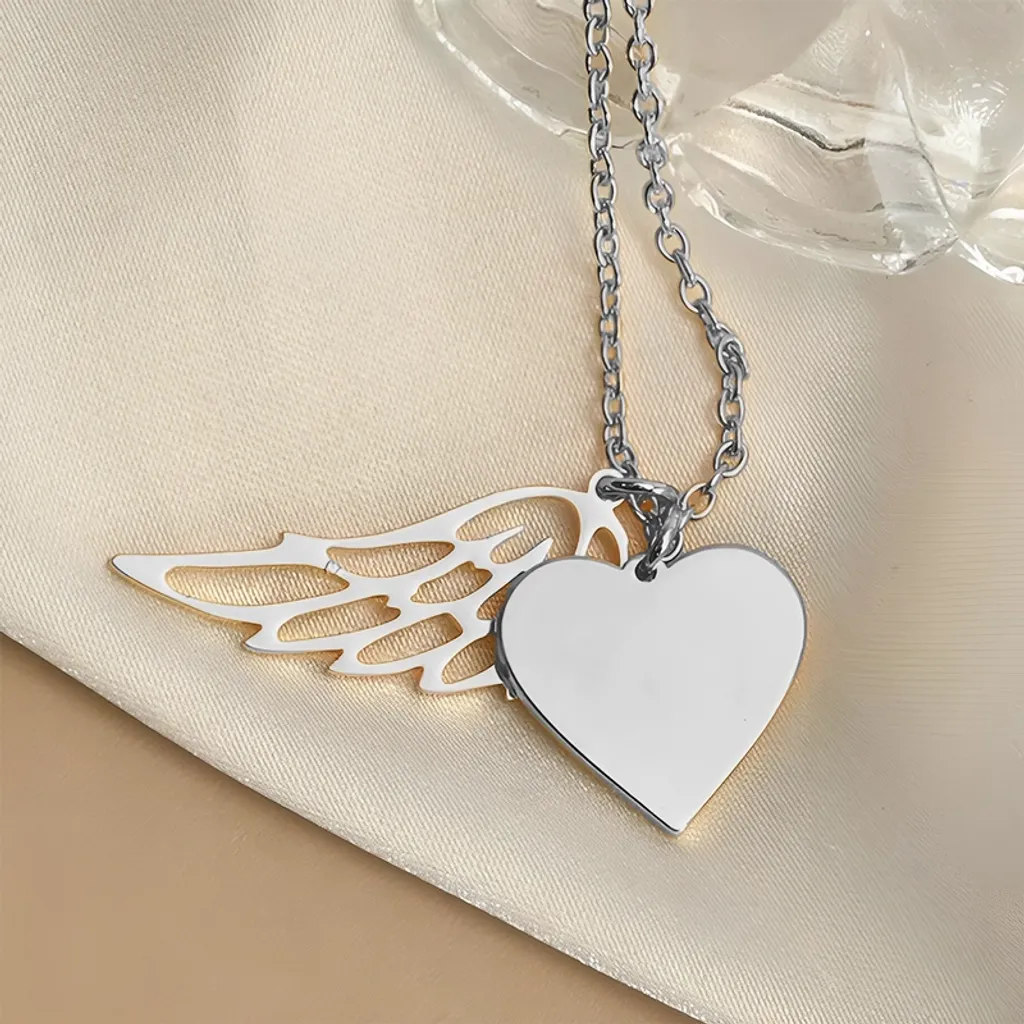 - 1 x Namenskette in Herzform mit Flügeln, personalisierte Gedenkkette mit Engelsflügeln
