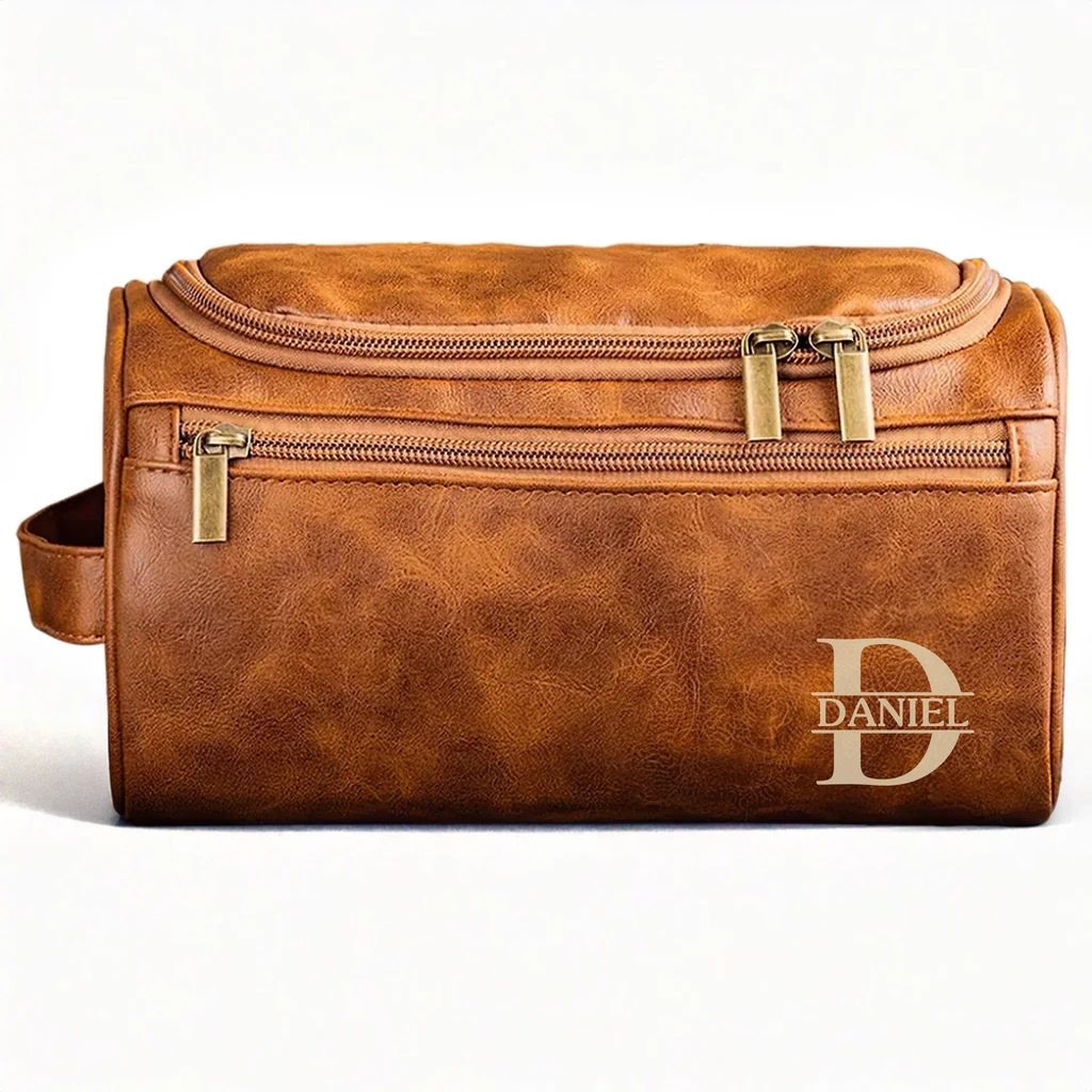 Individuell gravierte Kulturtasche aus Leder – Personalisiertes Geburtstagsgeschenk für Papa, Bruder, Opa, Ehemann – Für den Mann, der immer unterwegs ist
