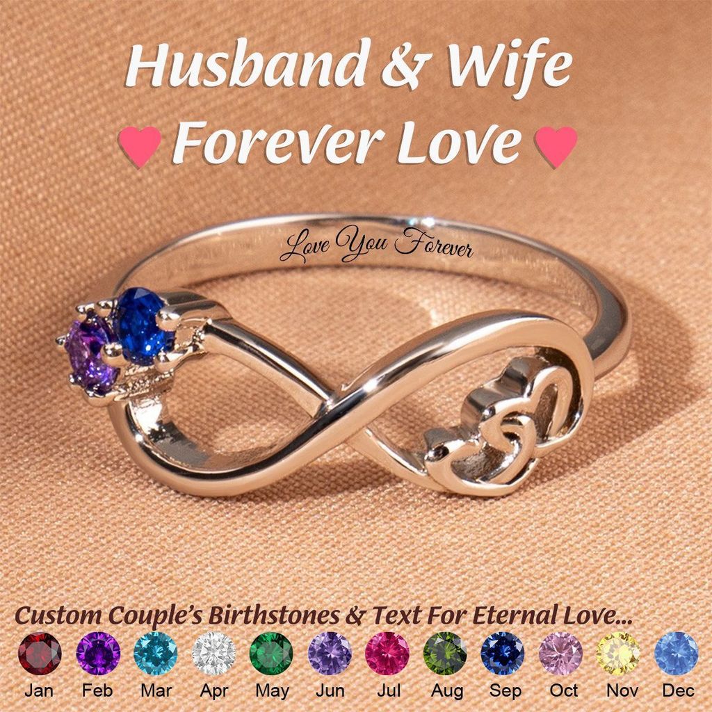 Unendlichkeit Doppelherz Personalisierter Geburtssteinring mit Gravur, personalisierter Ring, Geschenk für Mama, Oma, Paar