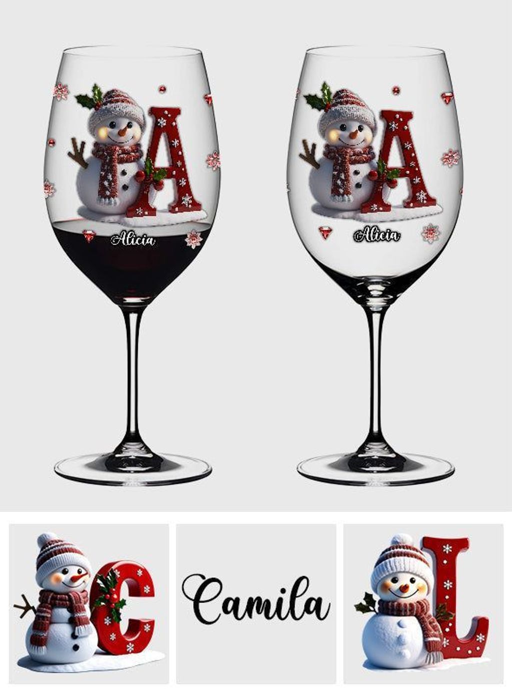 1 xFrohe Weihnachten – Personalisiertes Familien-Weinglas mit langem Stiel