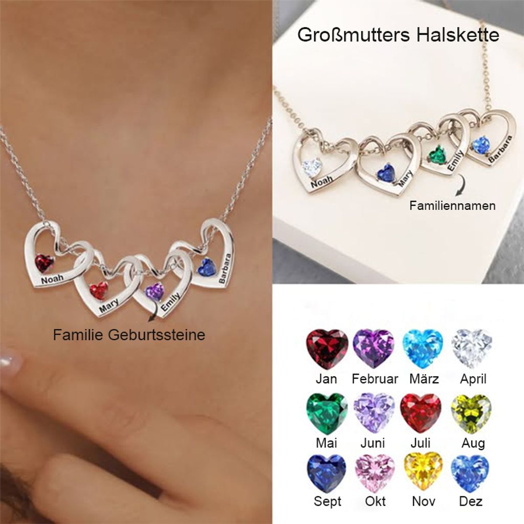 Personalisierte Herz-Namens-Geburtsstein-Halskette für Mama Oma