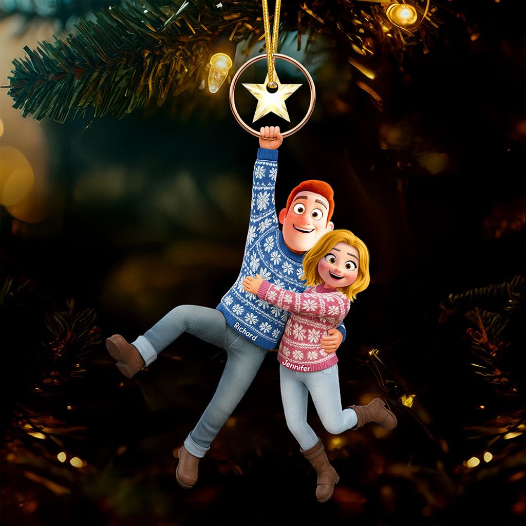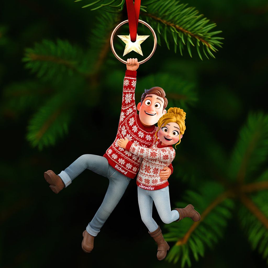 Personalisiert für Paare! Baumschmuck und Dekoration – verschiedene Formen und Materialien, mit festlichen Symbolen für eine fröhliche Atmosphäre.