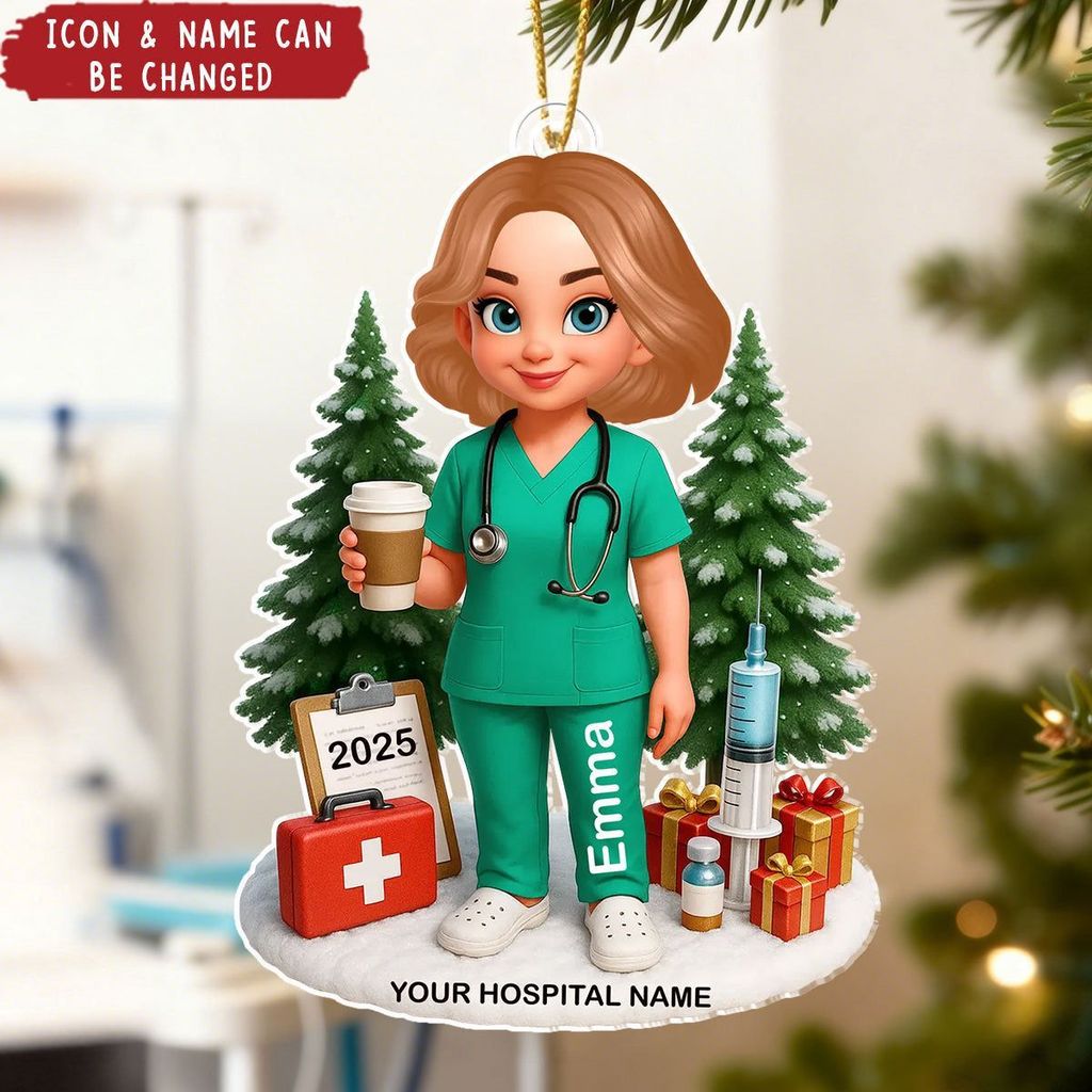 Stolze Krankenschwester mit Signatursymbolen Weihnachten - Personalisiertes Acrylornament